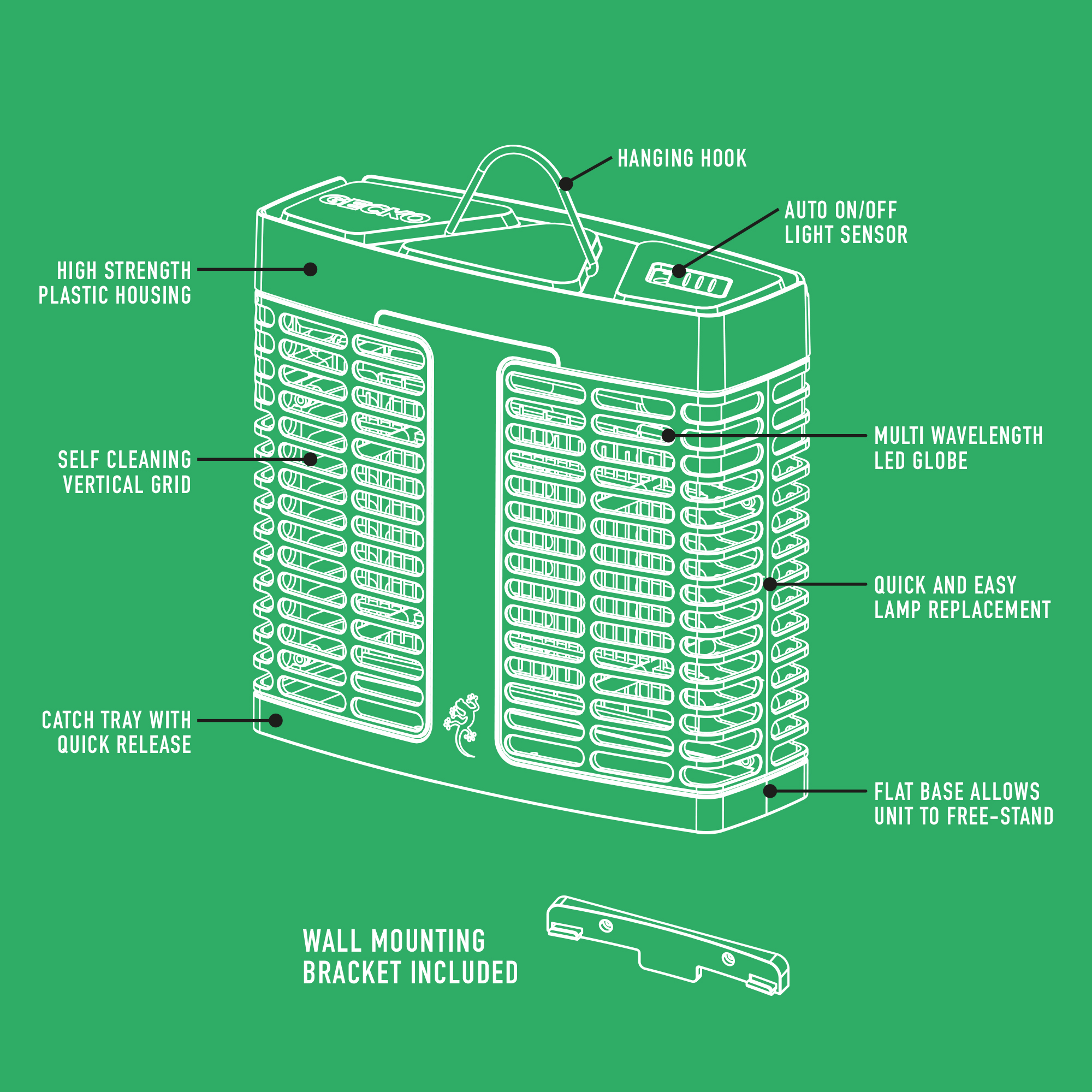 The Gecko Slimline Insect Zapper is the innovative all-rounder designed to keep small backyards, cafes and eateries free of flying pests. With an auto on-off sensor that activates at dusk and switches off at dawn—or the option to run continuously—it delivers hassle-free protection day and night. Its slim, versatile design can be free-standing, wall mounted or hung to suit any space.